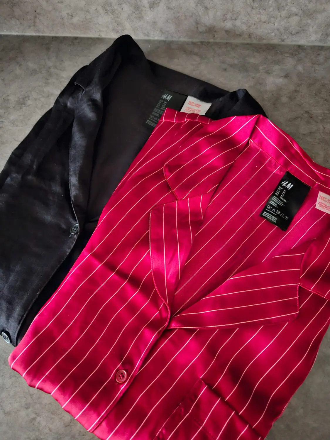 En svart och en röd silkespyjamas från H&M. Länk till den röda, den svarta.