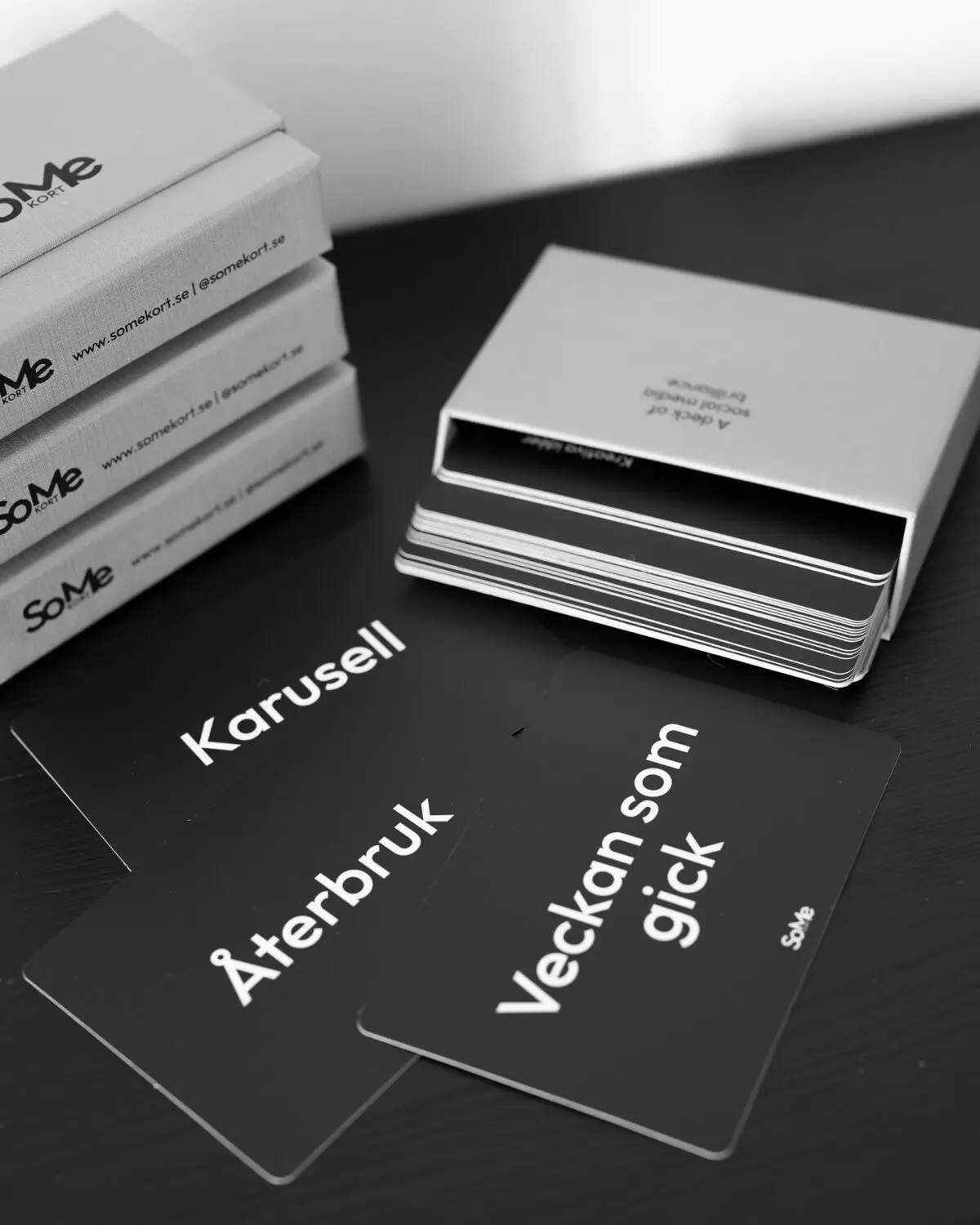 SoMe-kortleken är skapad för dig som dagligen jobbar med företagets sociala medier. Placera den snygga boxen på skrivbordet och ha alltid nya idéer inom räckhåll. Innehållet är skapat av erfarna kommunikatörer och social media managers och är en perfekt present till dig själv eller en kollega. Beställ på www.somekort.se ⭐